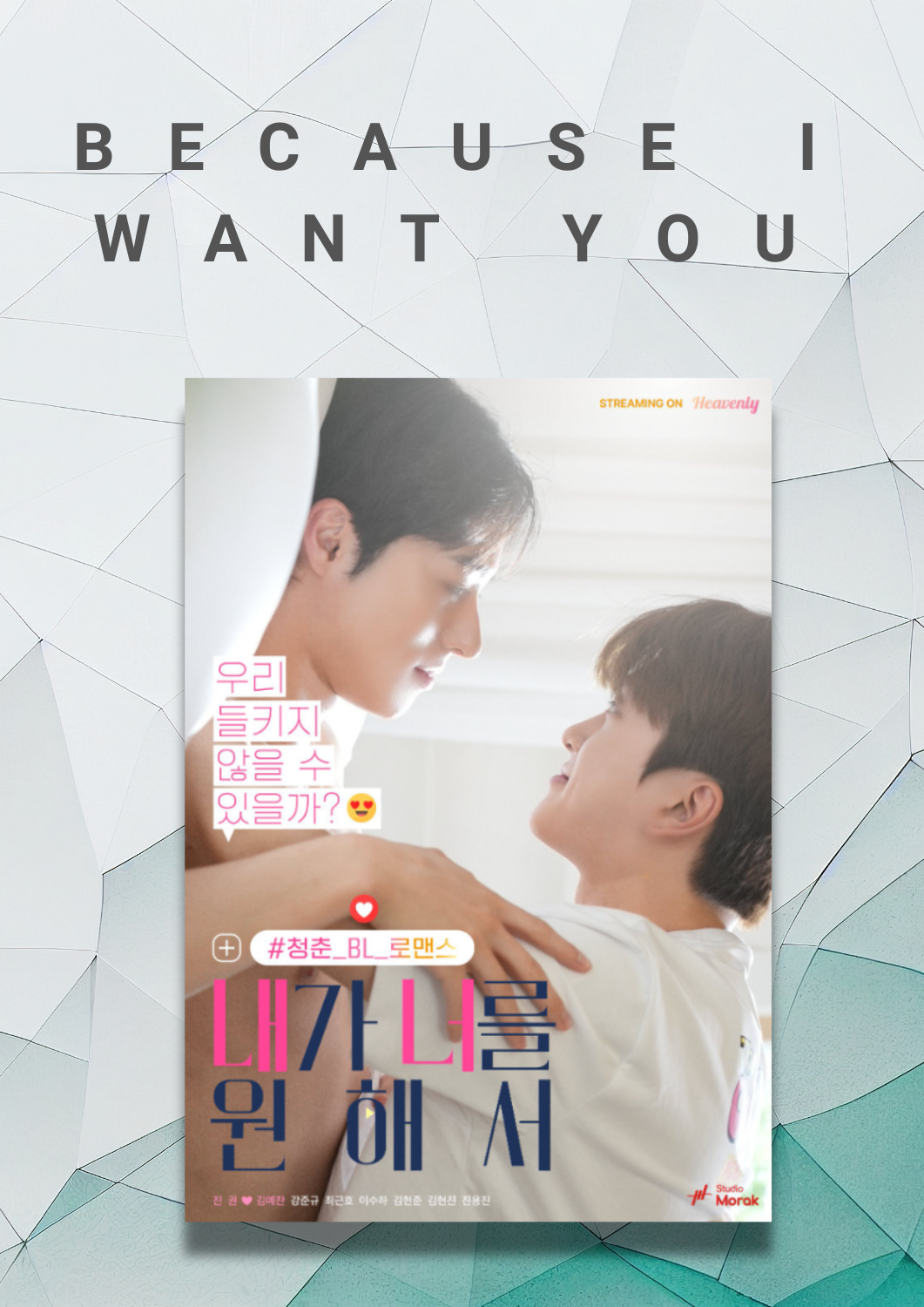 Check out the official poster for the upcoming Korean BL web series "Because I Want You" (내가 너를 원해서), starring Kim Ye-chan of My Team Leader Is Working Late Again and Jin Kwon, who delivered a standout performance in Jazz For Two.