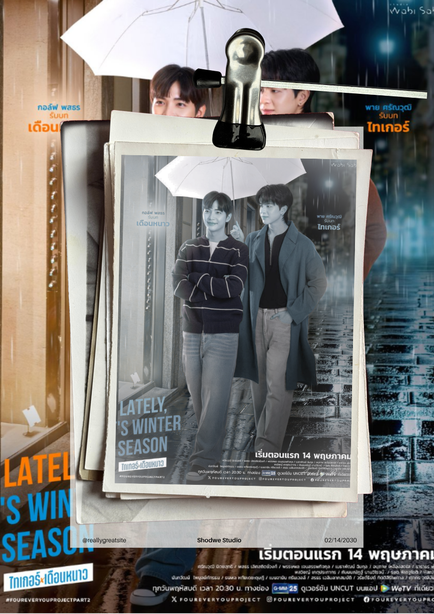 Studio WabiSabi released the new poster of Fourever You 2, Lately, It’s Winter Season featuring actors Pie Saranvut as Suer/Tiger and Golf Pasatorn as Nao. Expect an amazing eight episode story that explores the complexities of friends to lovers relationship. Aring Thursdays at 20:30 on GMM25 and uncut on WeTV starting May 14, another exciting BL from GMMT25, Studio WabiSabi and WeTv.